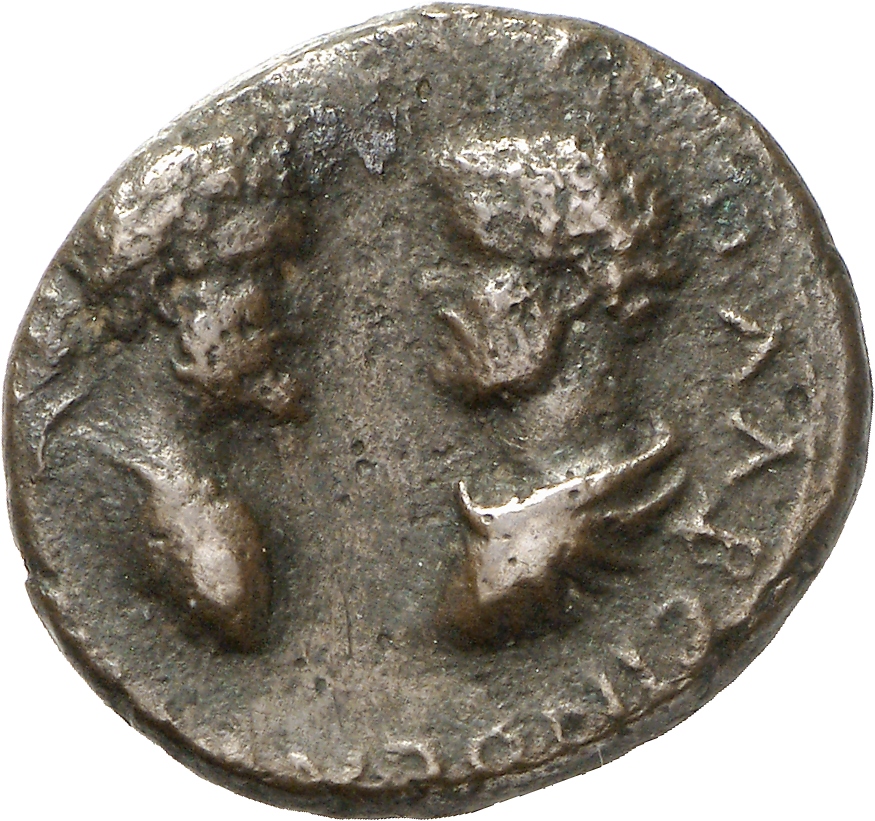 Confronted busts of Clodius Albinus, bare-headed, and of Septimius Severus, laureate.