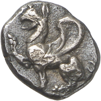 Lion scalp facing, within incuse square.