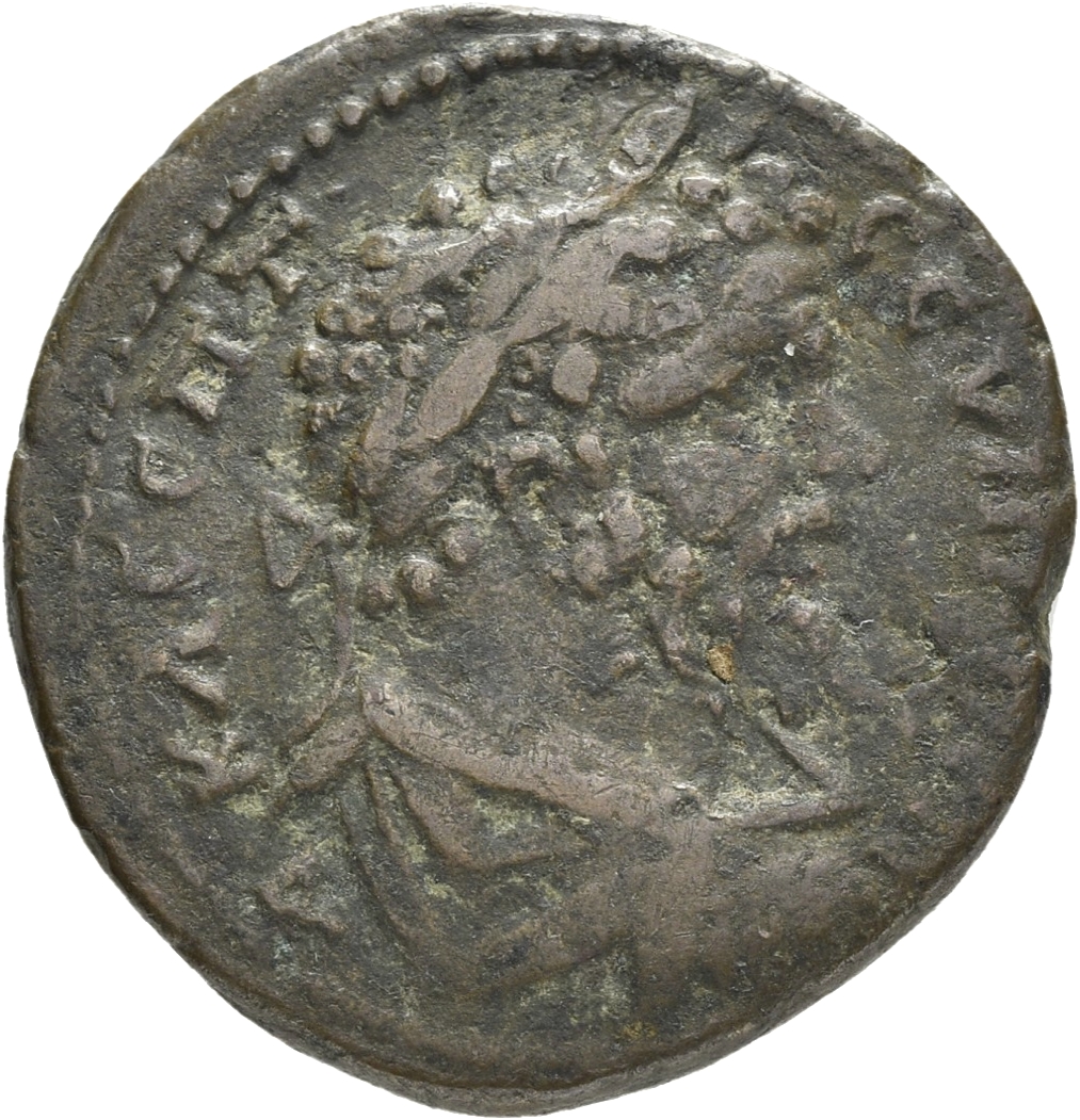 Laureate bust of Septimius Severus, right, wearing cuirass and paludamentum.