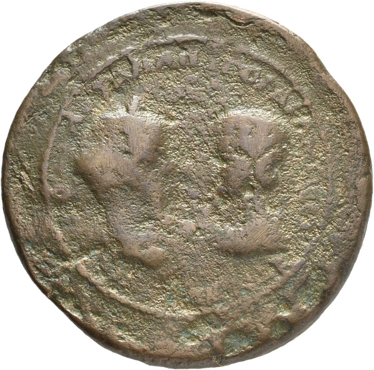 Confronted busts of Gordian III, laureate, wearing paludamentum, and of Tranquillina, diademed and draped.